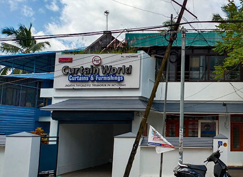 CURTAIN WORLD is an exclusive centre for Curtains & Furnishings at Trivandrum. We are located at Jagathy, Thycaud P.O, Thiruvananthapuram – 695014. Wonderful and stunning designs or all sorts are professionally designed by us. For Houses, Offices, Hotels, Restaurants, Hospitals etc we are designing for all. Curtains with all types of cloths which our customer wishes will be done by us. Bamboo Curtains, Blinds of various types etc will also done.